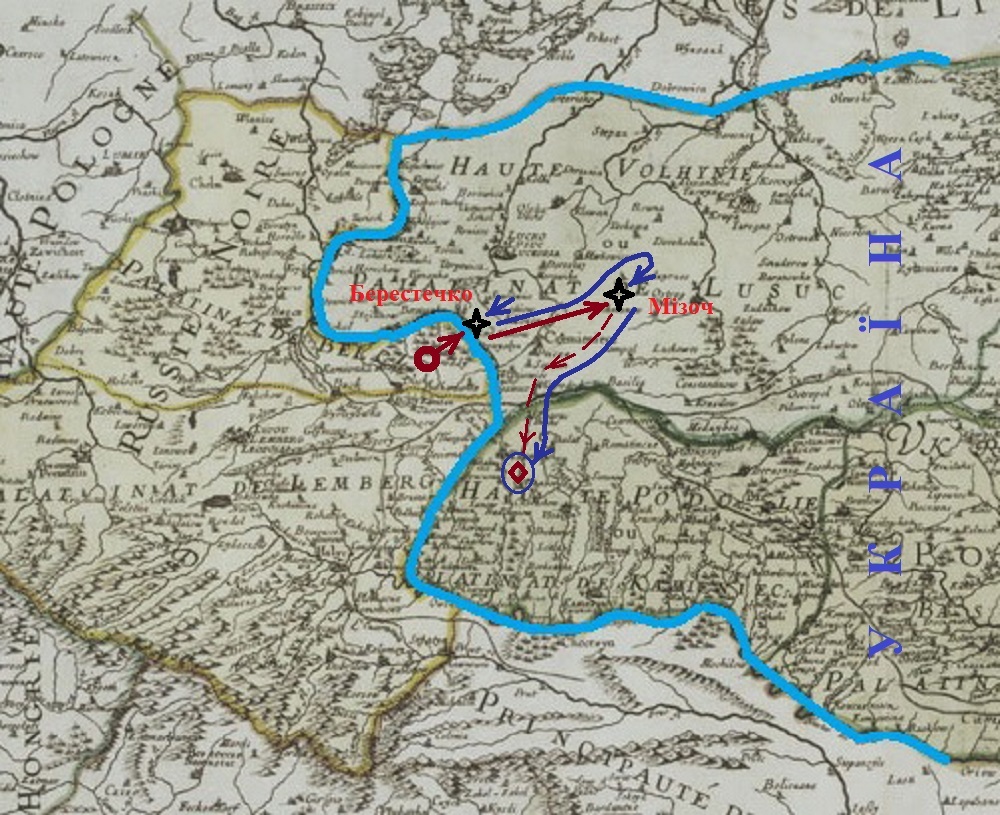 Переступивши межі України, ця сила у 1651 році зупинилась під Берестечком. Тут мала відбутись генеральна битва між військами Яна ІІ Казимира та армією Івана Богуна – керівника української держави.