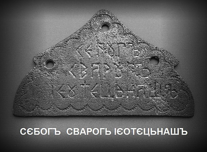 Весь текст звучить так – СЄБОГЪ СВАРОГЪ ІЄОТЄЦЬНАШЪ.