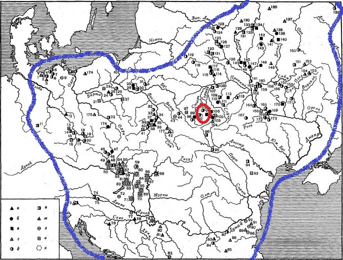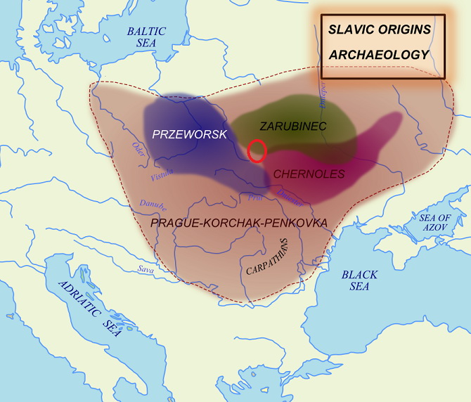 У цьому регіоні, який тягнеться від Прип'яті до Карпат, від Вісли до Дніпра, на протязі 1 тис. до н.е. - 1 тис. н.е., ніколи не зникали ознаки слов'янства, не пропадав живий послідовний зв'язок культур праслов'янських та давньослов'янських, які єднають історію слов'ян з нашими часами.