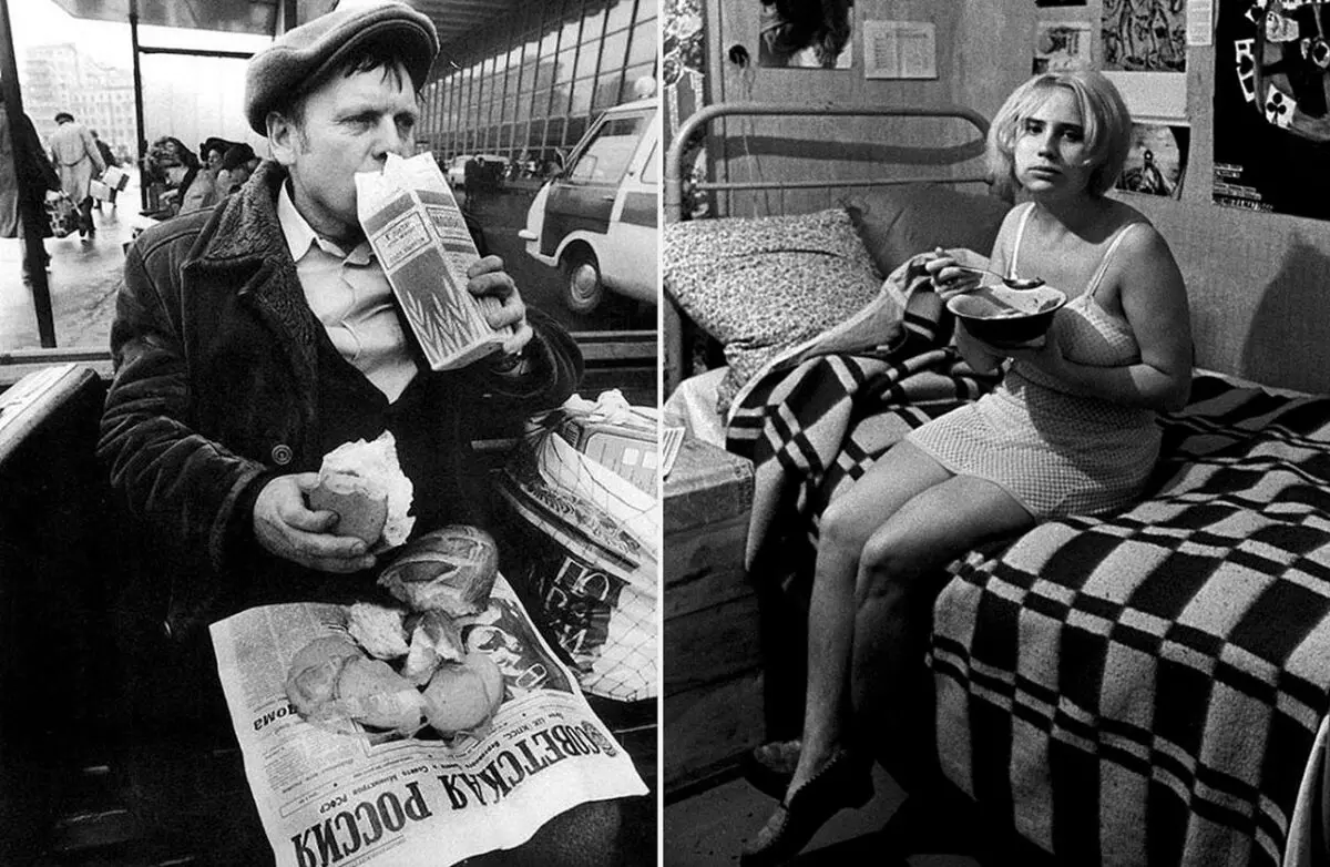 Если вы внимательно посмотрите советские фильмы, то во многих из них отыщете сцены «рабочих перекусов», выглядит это чаще всего весьма печально — как правило, человек хомячит какой-нибудь дешевый купленный в магазине хлеб или батон с холодным молоком или кефиром — такая сцена есть, например, в фильме «Операция Ы» и многих других.