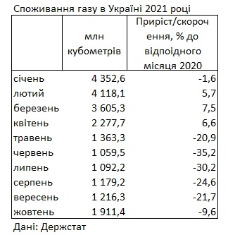 Сокращение потребления газа наблюдается в Украине уже шестой месяц подряд - с мая 2021 года.